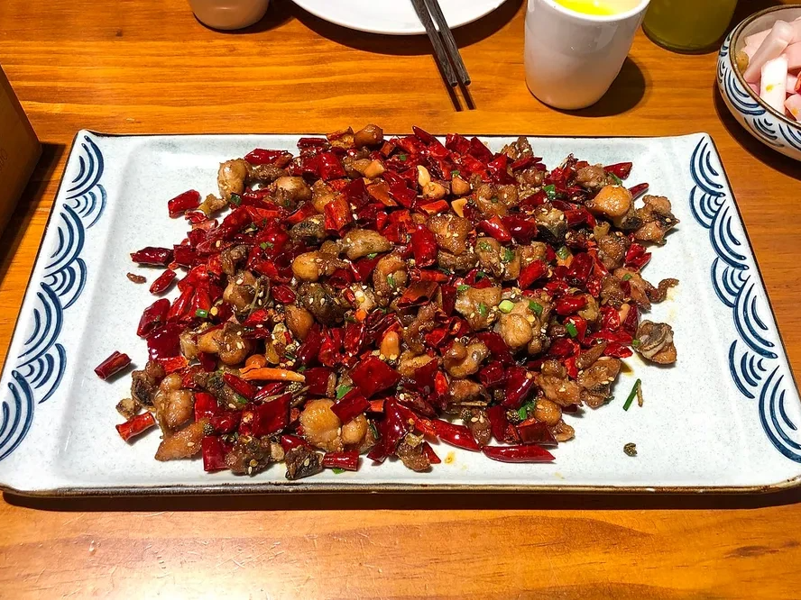 • 비주얼: 접시를 가득 덮는 붉은 건고추와 초피열매, 그 사이사이로 닭조각이 박혀 있는 구성이 전형적입니다.