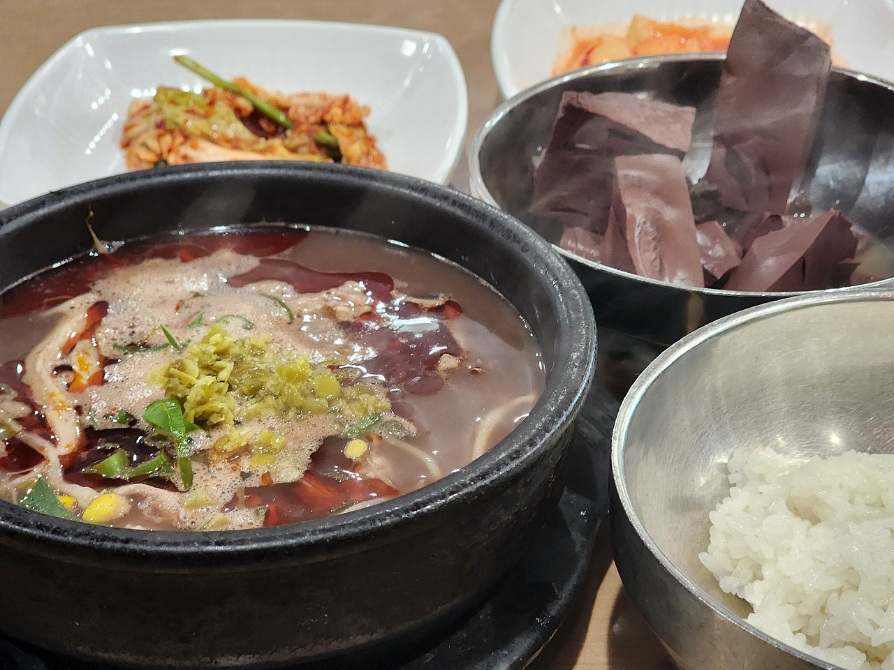 국내산 한우 내장과 선지를 사용하며, 곁들이는 김치도 국내산 채소로 직접 담근다는 점이 눈에 띕니다.