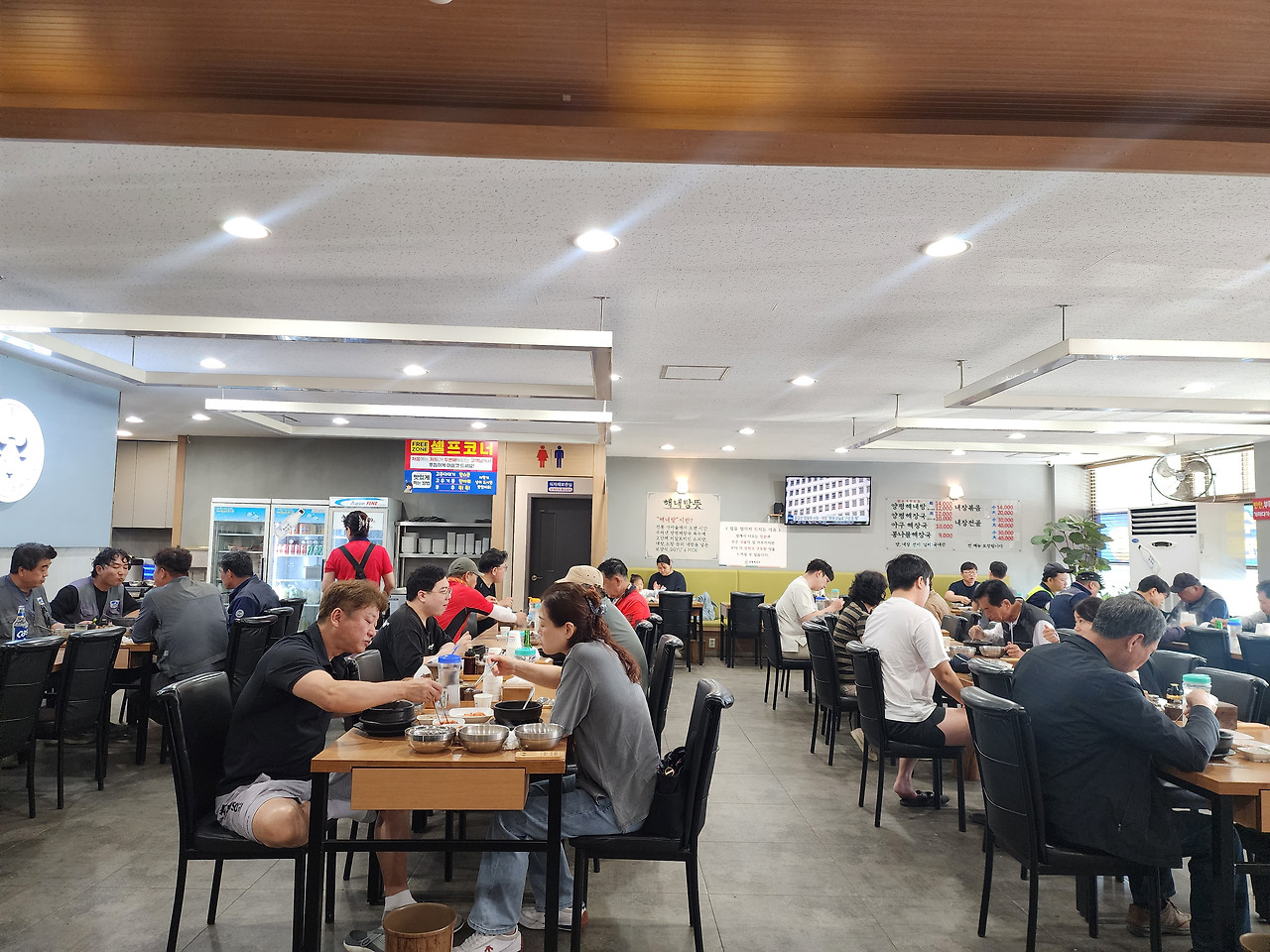 가게 내부는 넓고 테이블 간 간격도 여유가 있어 단체 방문에도 무리 없습니다. 실제로 현장직 근로자, 택시기사, 지역 주민 단골이 많아 아침 시간대부터 붐비며 점심시간엔 웨이팅도 발생합니다.
