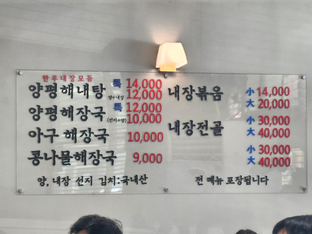 메뉴와 가격 - 한우 내장, 선지, 양, 콩나물까지 가득한 푸짐함