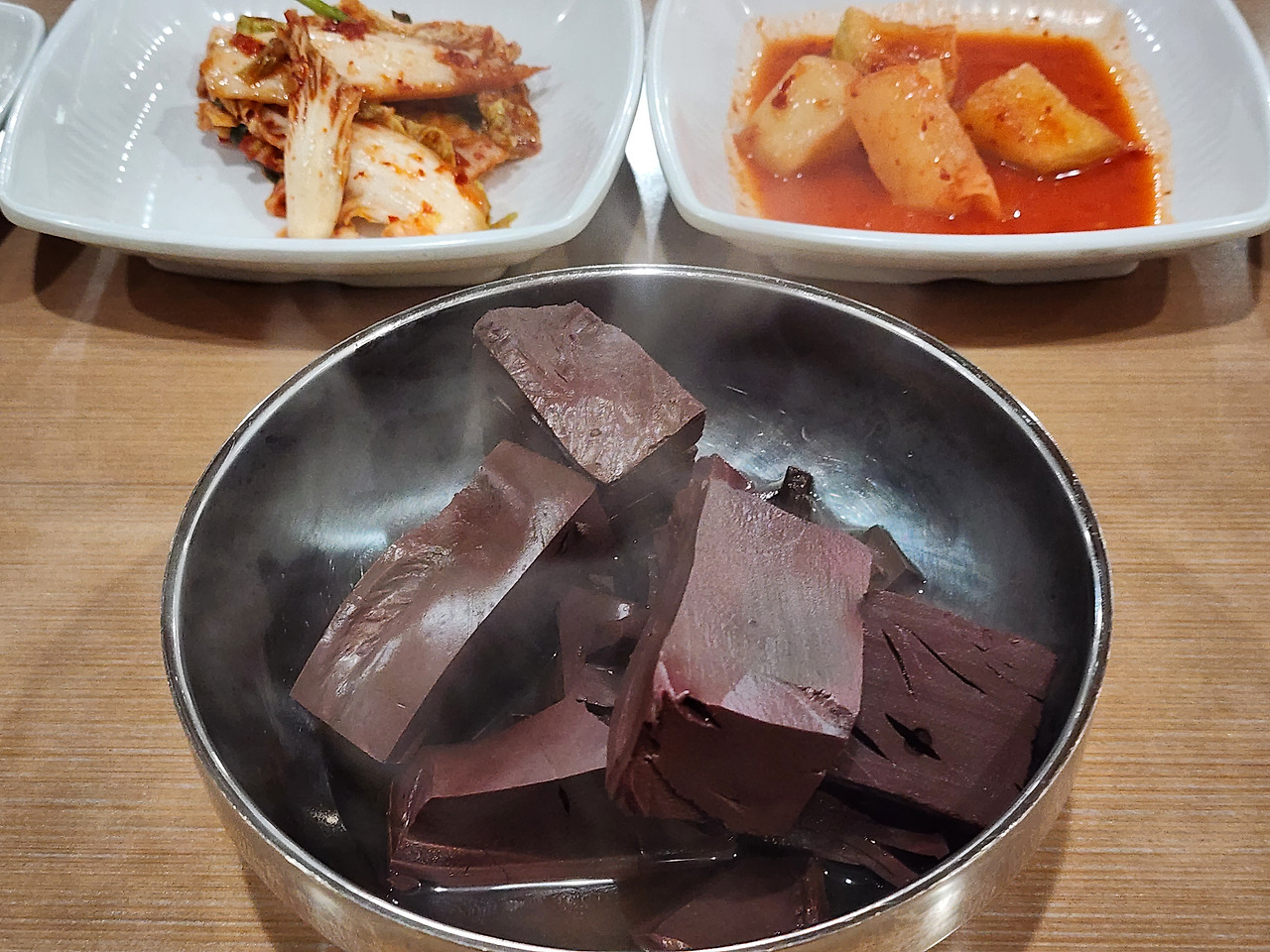 무한리필로 셀프로 가져다 먹을 수 있는 추가 선지(사이드볼 제공)는 따끈하게 데쳐져 있어 잡내 없이 담백하며, 국물과 따로 먹어도 훌륭합니다.